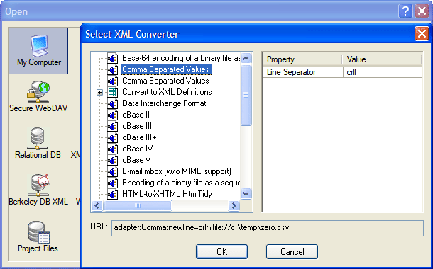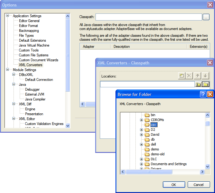 Assuming we put those files into C:\csv, we go into Tools > Options > XML Converters and add that to our path.
