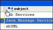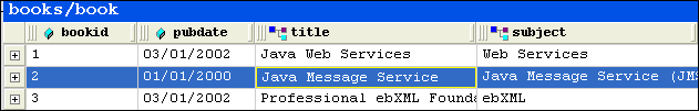 Column operations can be performed when you select any cell in a column. When a cell (and, therefore, its column) is selected, it is highlighted with a yellow outline. As shown in Figure 120, the <title> column is selected - the cell containing Java Message Service is the one that is highlighted.