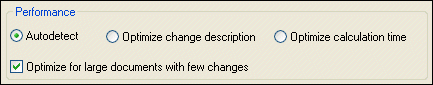 The Optimize for large documents with few changes setting helps speed the diffing of large (greater than 1MB) documents. This setting can be used in conjunction with any of the algorithm tuning settings and is on by default.
