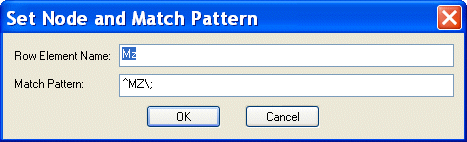 You can use regular expressions to specify match patterns for the rows in the input file. Only those rows in the input file that match the pattern you specify are output to XML when the file is converted. The simplest way to define a match pattern is to use the Match Pattern property in the Row Element Name section of the Properties window.