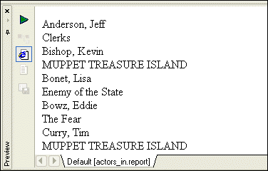 This example describes how to build a simple report in XML Publisher, shown here, that lists actors and the movies they have appeared in. The information for this report is based on the data in videos.xml, in the VideoCenter folder in the Stylus Studio examples project. Specifically, it matches the id attribute in the actors/actor element with the videos/video/actorRef element.
