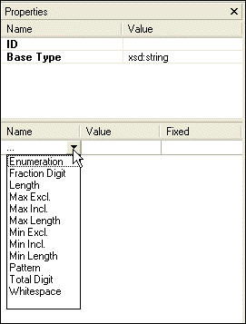 In the lower half of the Properties window, Stylus Studio displays a section that allows you to specify facets - values that define the constraint on the range of values allowed by the base type.