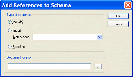 4. Specify the type of reference you want to make. If you are redefining an XML Schema, specify the namespace in the Namespace field.