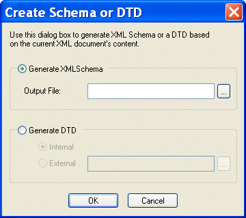 - The Create Schema from XML Content feature in the XML Editor. This method allows you to create an XML Schema (or DTD) based on the current XML document in the XML Editor. The XML document is always modified with namespace and schema location attributes when you use this method. If you choose to create DTD, you have the option of creating internal or external DTD.
