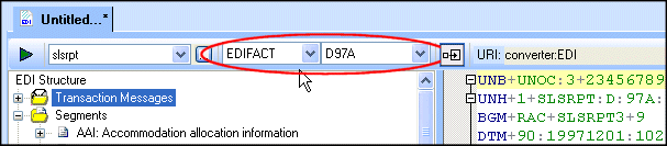 The EDI dialect and version associated with an EDI to XML conversion is always displayed in the EDI to XML editor.