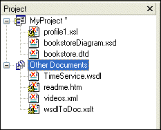 Stylus Studio displays documents that are not associated with a project in the Other Documents folder, which appears after the last folder or document in the currently displayed project. In addition, when you remove a file from a project, it is placed in the Other Documents folder.