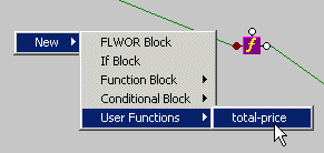 When you create a user-defined function, Stylus Studio adds it to the New > User Functions shortcut menu available when you right-click the mapper canvas.