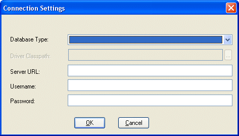 5. When you select a database in the Database Type field for which you must specify a driver, the Driver Classpath field becomes enabled. To specify the driver location: