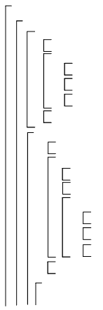 As you can see from the description in the previous section, the XSLT processor iterates through the process of searching for a matching template, instantiating one of the default templates, and operating on the children of the node for which the template was instantiated. The following figure shows the template instantiations through the second book element. In the figure, each bracket encloses the instantiations that together compose a complete instantiation for a particular element.