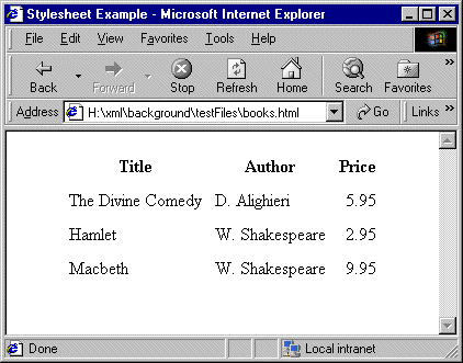 You can use a stylesheet to transform this XML document into an HTML document that appears as follows in a Web browser: