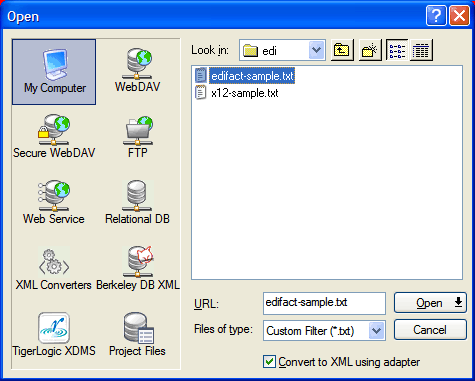 is to convert EDIFACT to XML. First, use the same File|Open dialog you are used to in other applications to