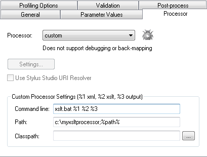 Through a simple dialog box (illustrated here), you can easily configure <%=ConfigurationManager.AppSettings["SS"]%> to work with any other 3rd Party XSLT processor by creating a batch file that takes three arguments (XML input file, XSLT stylesheet, and output file).