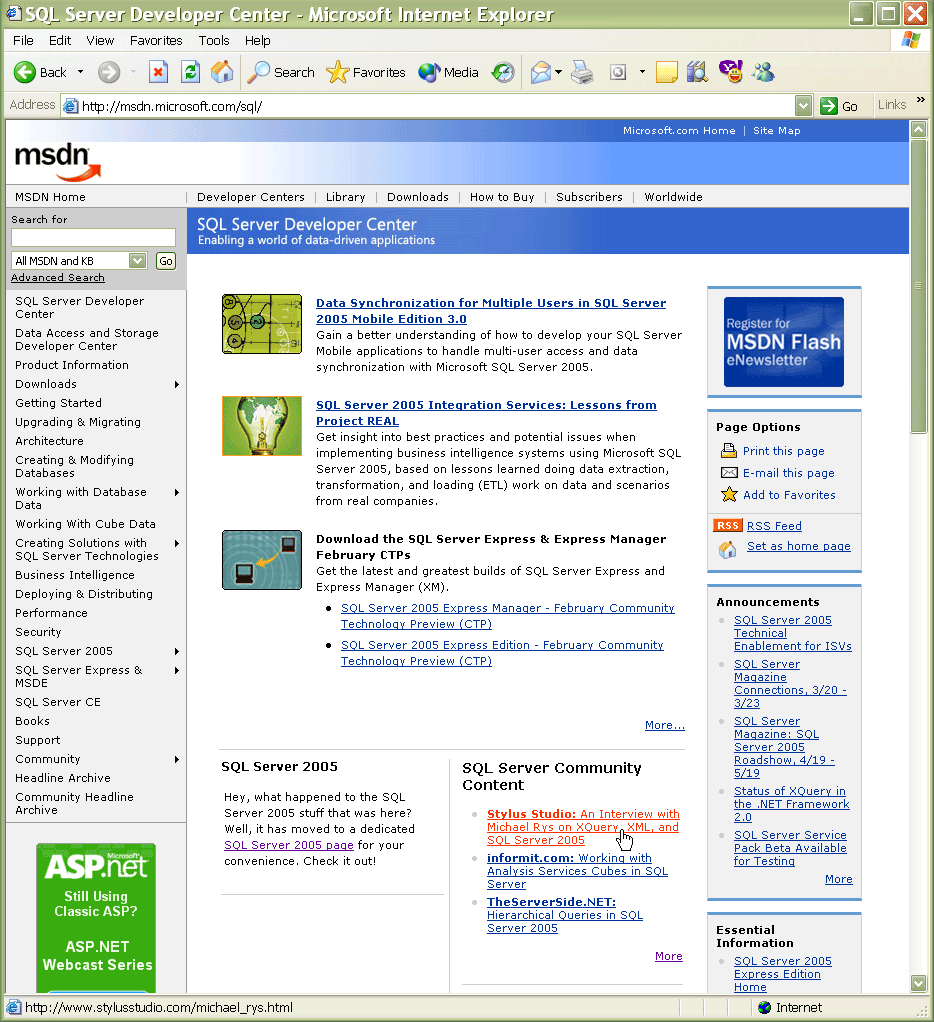 Download PDF (0.2MB) >The MSDN SQL Server Developer Center picks-up <%=ConfigurationManager.AppSettings["SS"]%>'s recent interview with Dr. Michael Rys on XQuery, XML, and SQL Server 2005, the latest in a series of interviews of industry leading XQuery personalities, produced by <%=ConfigurationManager.AppSettings["SS"]%> for the <%=ConfigurationManager.AppSettings["SS"]%> Newsletter.