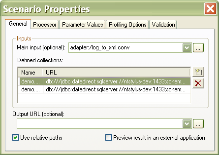 A primary benefit of using the DataDirect XQuery processor over other conventional in-memory processors, and other proprietary XQuery processors is that you can extend your XQuery applications to access any relational database. Accessing relational and XML data using XQuery and Stylus Studio is easy, using the collection function, an important part of the XQuery standard for accessing tables and other data sources. To configure you XQuery collections, go to the XQuery scenario properties window and switch to the "General" tab as illustrated in the following screenshot. In the "Defined Collections" area, create a new collection and a database connection wizard will guide you through the process of creating connection string to your data source. Once you're done, you can access the relational data from within your XQuery as if it were an XML file on the local file system!